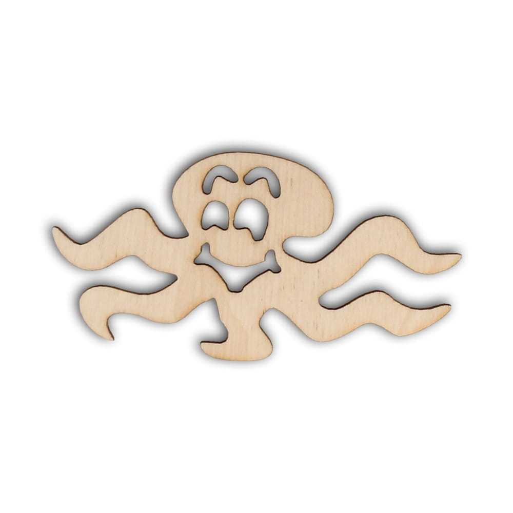 Dekoracja w kształcie ośmiorniczki wykonana ze sklejki brzozowej do samodzielnego ozdabiania.