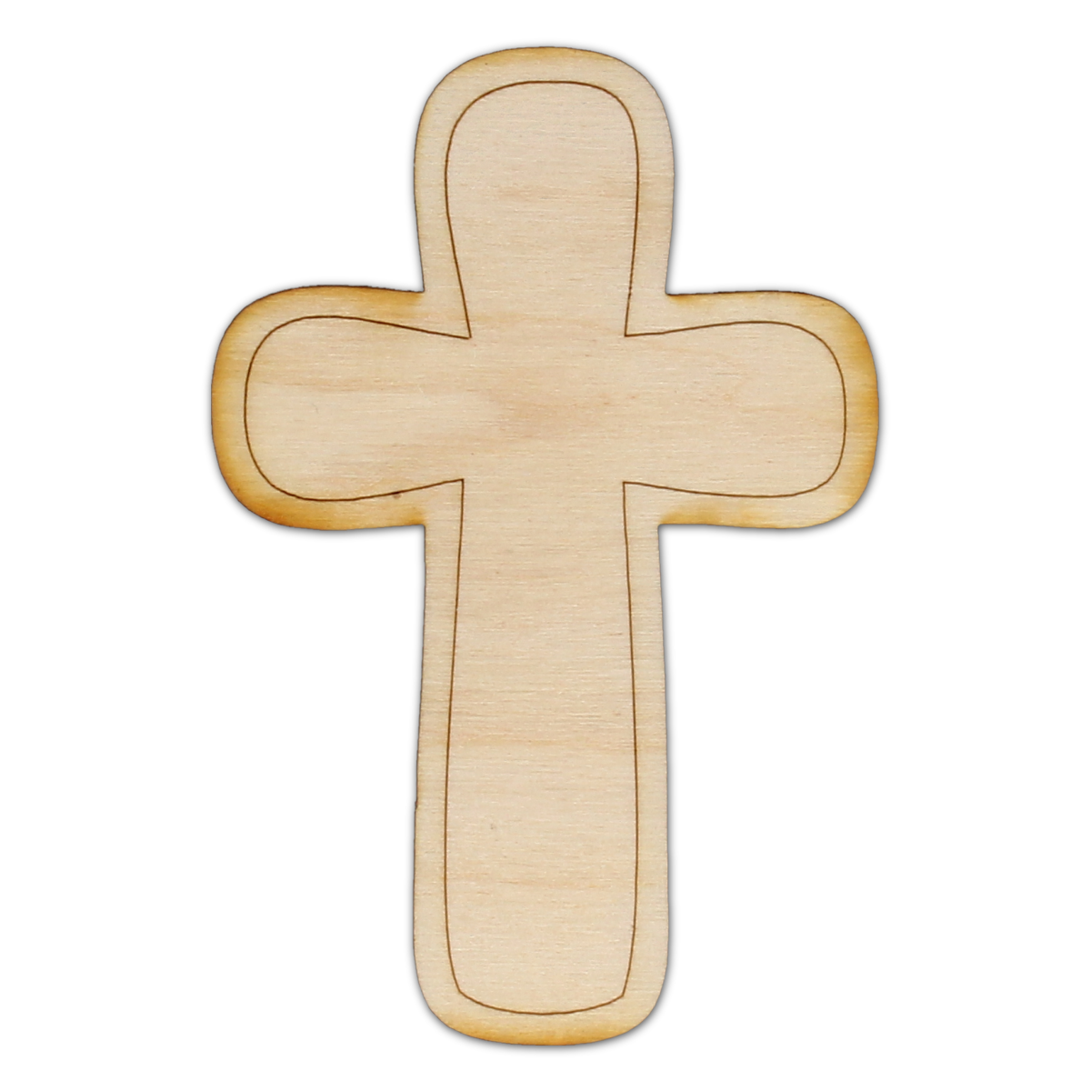 Sklejkowy element zdobniczy w formie krzyżyka. Krzyż ma zaokrąglone brzegi, co dodaje mu delikatności. Posiada obrys w postaci odwzorowanego krzyża w nieco pomniejszonej wersji. Sklejka ma grubość 3mm. Krzyżyk przeznaczony jest do samodzielnego zdobienia, aczkolwiek wygląda fantastycznie solo.
