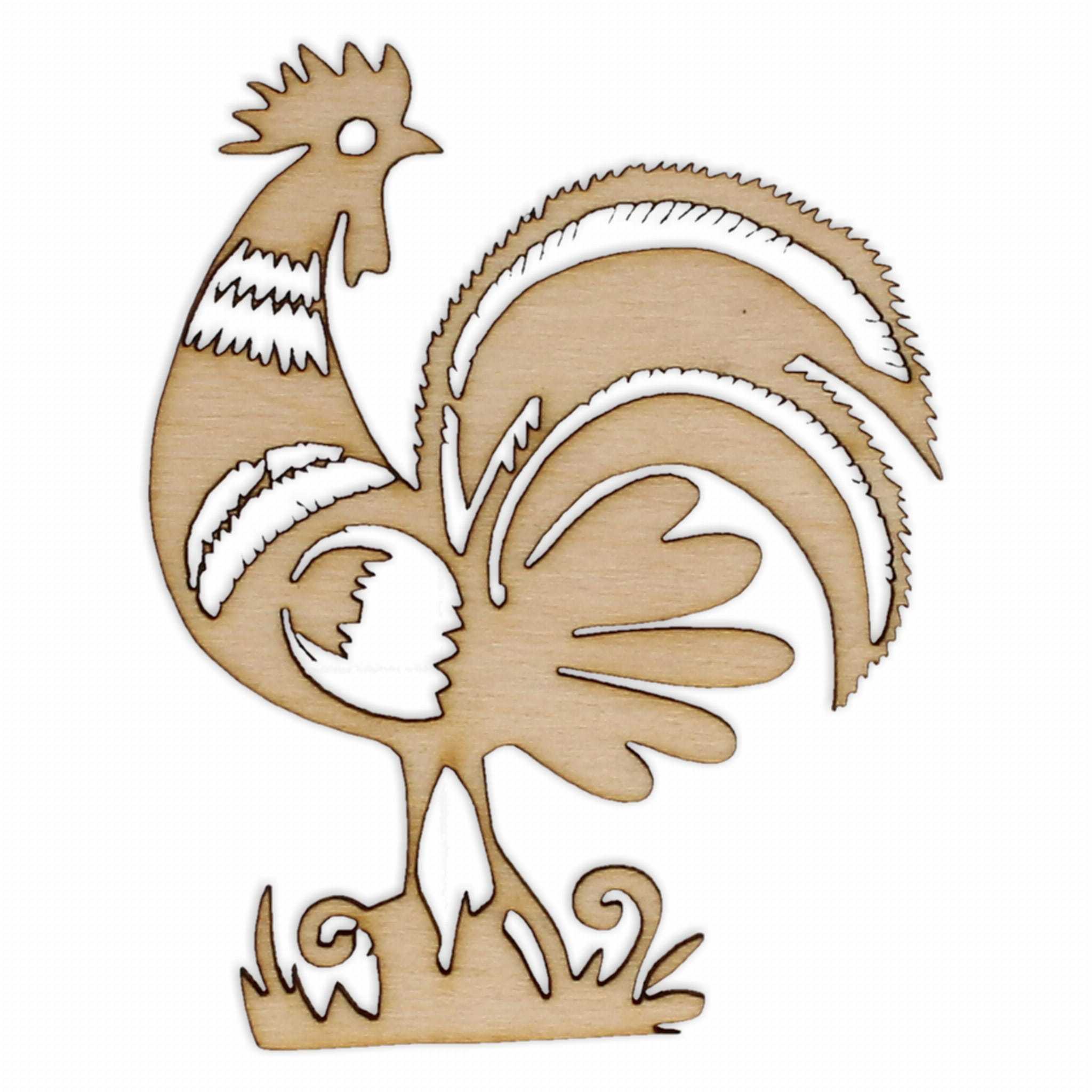 Wykonany ze sklejki dekor z motywem ludowym, przedstawiający kogucika łowickiego.