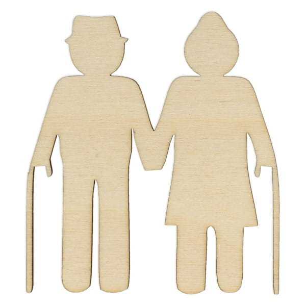Sklejkowy dekor przedstawia parę staruszków na spacerze.