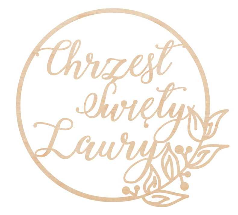 Dekoracja w kształcie koła z wpisanym imieniem dziecka stanowi doskonałą ozdobę przyjęcia z okazji Chrztu Świętego. Koło można pomalować na kolor wiodący imprezy, przybrać kwiatami lub innymi dekorami albo zostawić surowe, nadając przyjęciu rustykalnego charakteru. Po przyjęciu koło możesz umieścić w pokoju dziecka, gdzie będzie stanowiło piękną pamiątkę. Dostępne różne rozmiary kół.