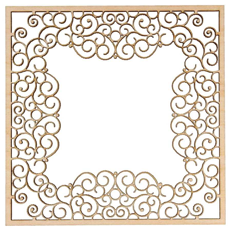 Duża, dekoracyjna ramka ze sklejki z ozdobnym ażurem.