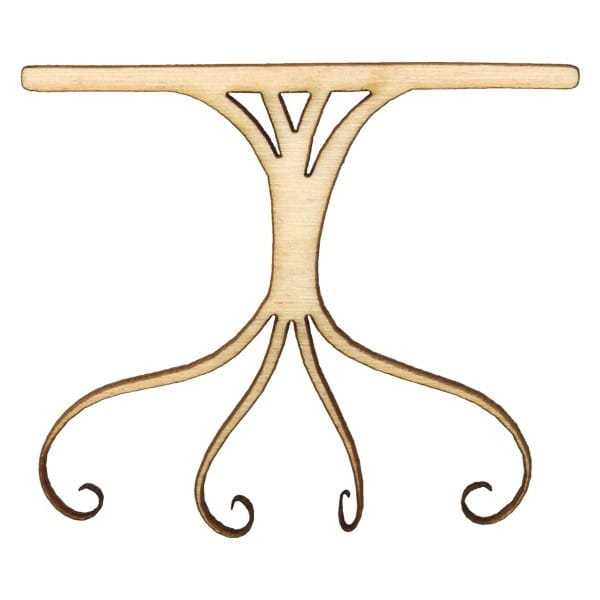 Dekor ze sklejki w formie giętego stolika z romantycznej kawiarni.