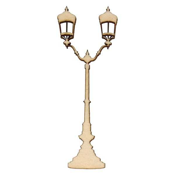 Dekor ze sklejki w formie stylowej latarni ulicznej.