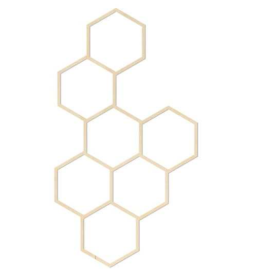 Ażurowa dekoracja ścienna ze sklejki w formie połączonych heksagonów.