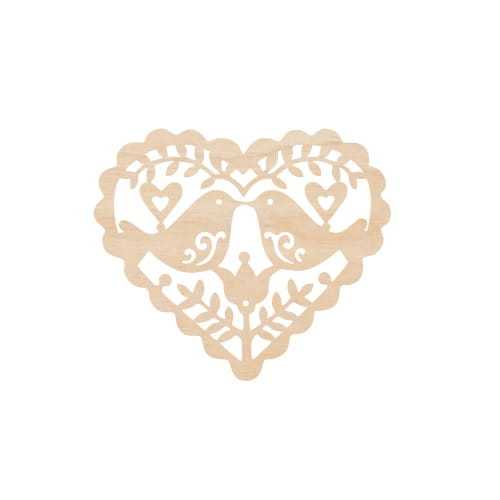 Dekor wykonany ze sklejki przedstawiający ptaki w sercu.