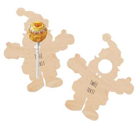 Dekor wykonany ze sklejki dopasowany do popularnych lizaków będzie miłym dodatkiem na różne okazje. Na Mikołajku możemy umieścić imię, datę lub inny krótki tekst. Pamiętaj, by podać go podczas składania zamówienia.