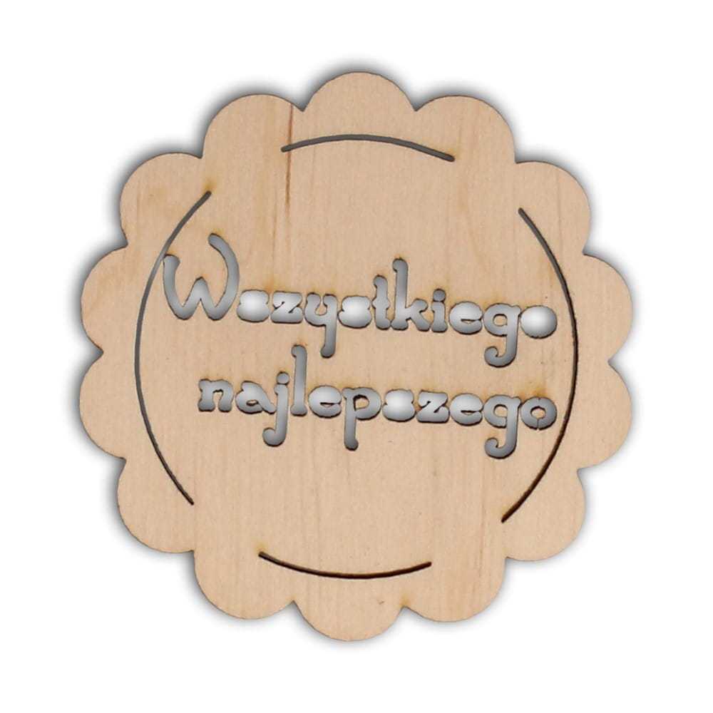 Drewniany dekor- kwiatek z napisem Wszystkiego najlepszego