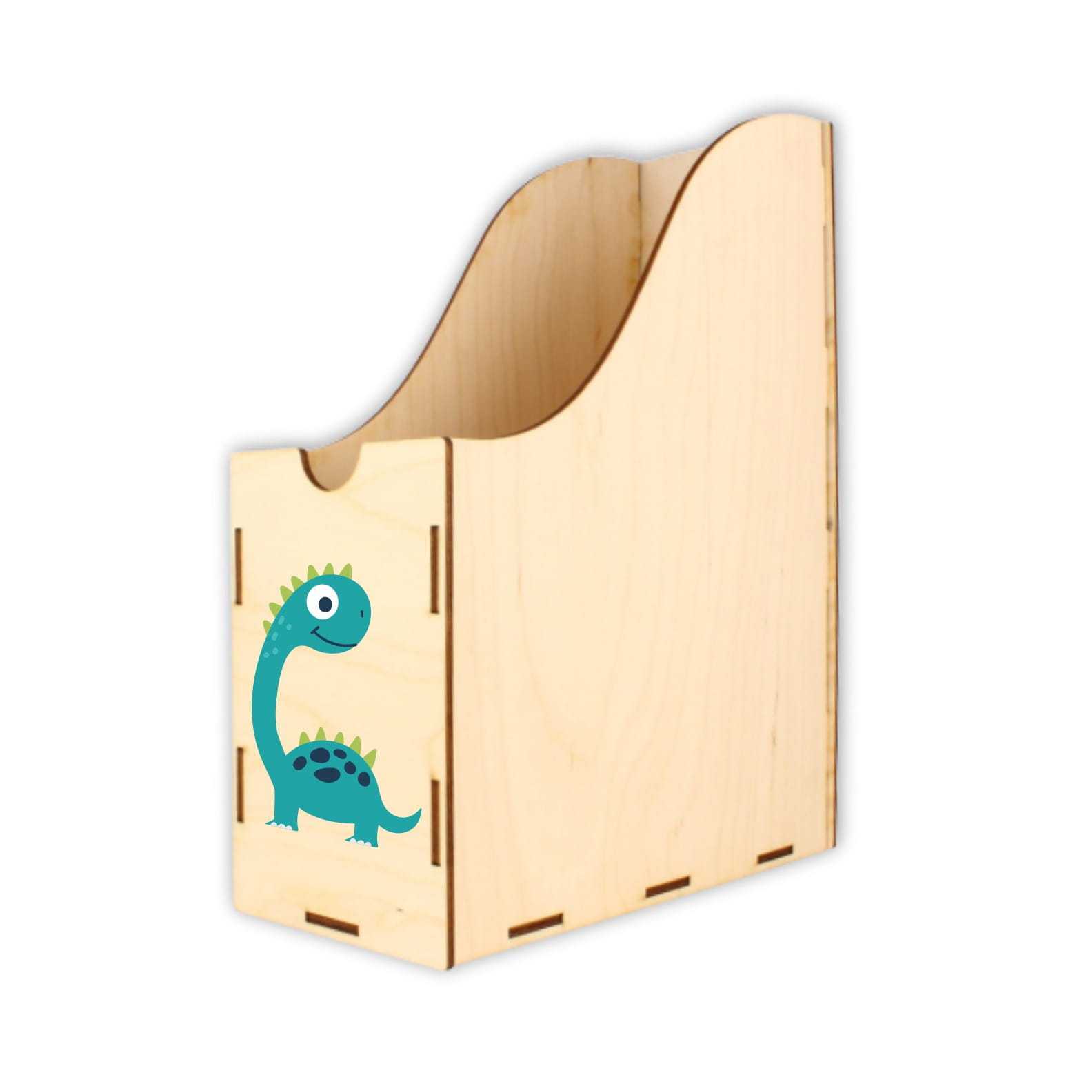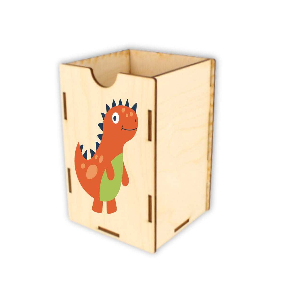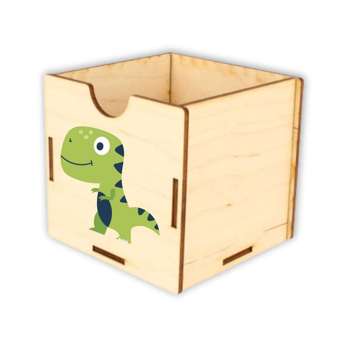 Dobrze zorganizowana przestrzeń to podstawa do nauki i zabawy. Drewniane pojemniki na akcesoria szkolne i kartki pomogą zorganizować przestrzeń na biurku dziecka. Zestaw składa się z trzech pojemników o różnych wielkościach. Na froncie każdego pojemnika nadrukowany jest kolorowy dinozaur.