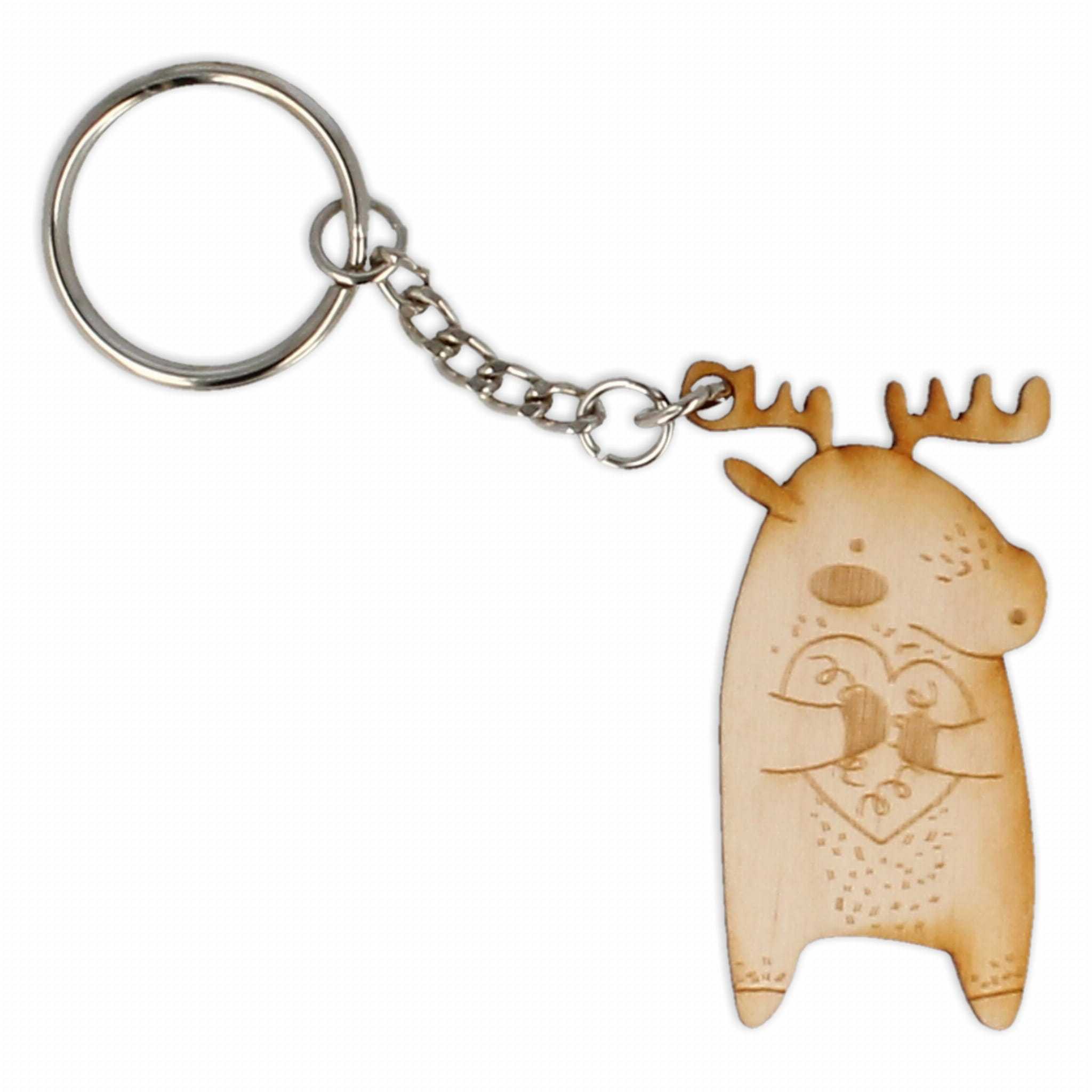 Brelok grawerowany w kształcie łosia utrzymanego w skandynawskiej stylistyce.