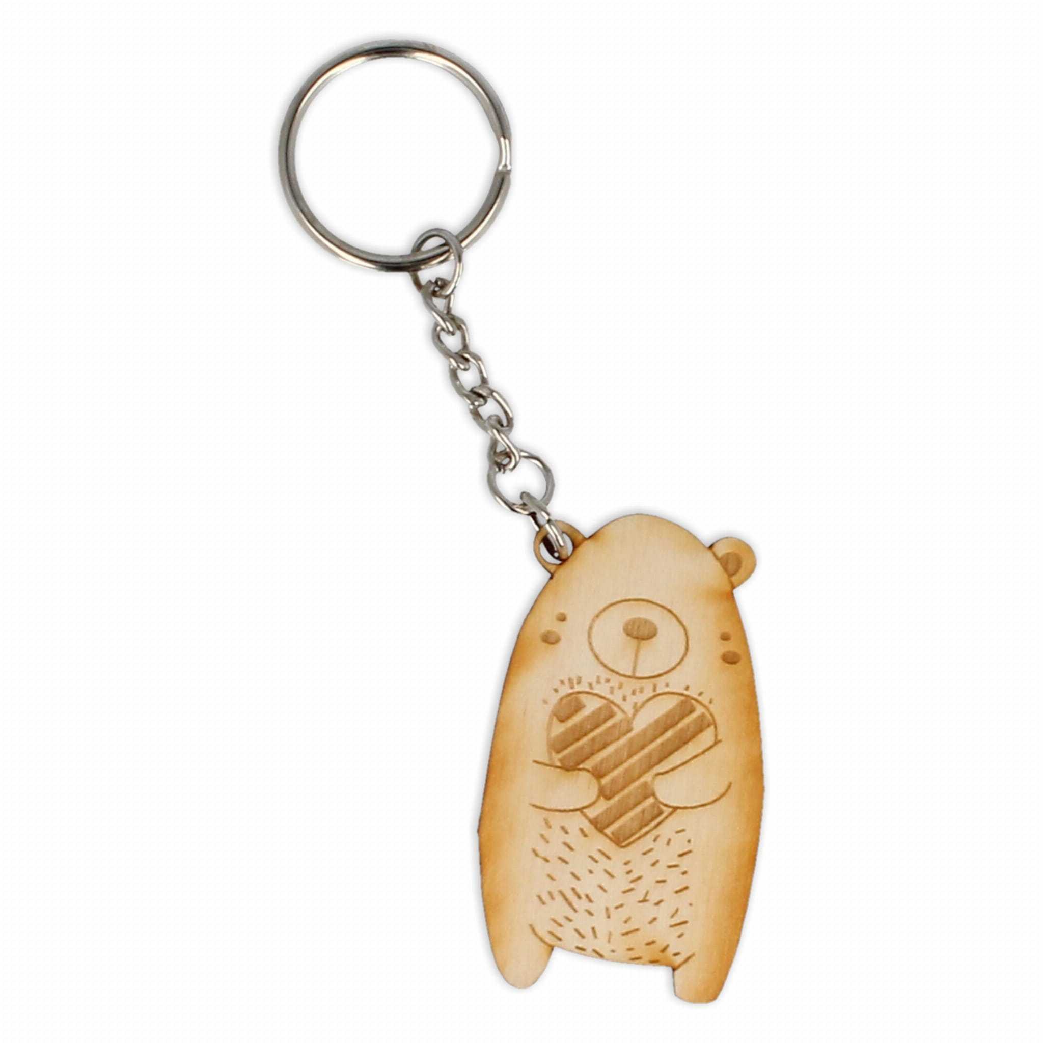 Brelok grawerowany w kształcie misia utrzymanego w skandynawskiej stylistyce.
