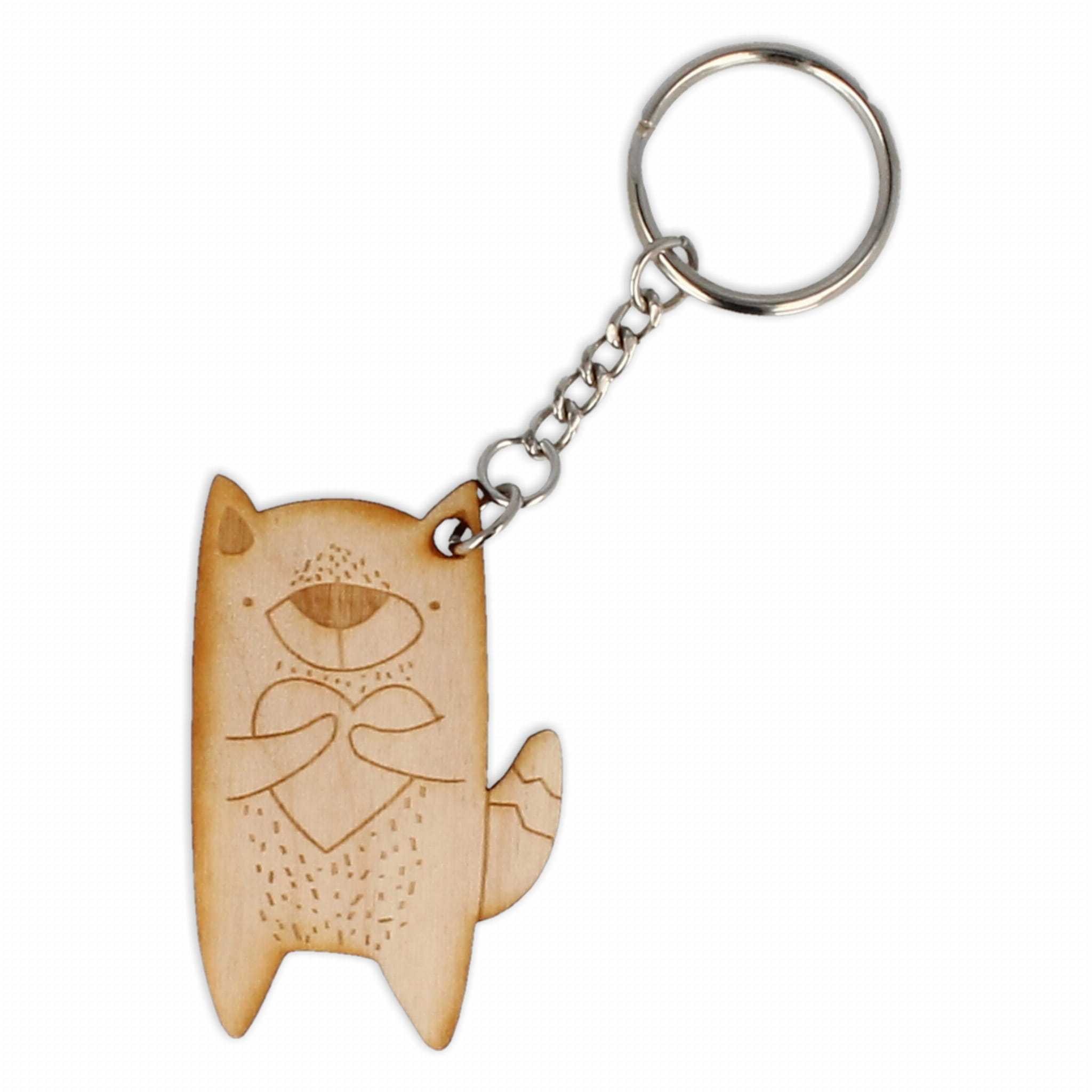 Brelok grawerowany w kształcie wilka utrzymanego w skandynawskiej stylistyce.
