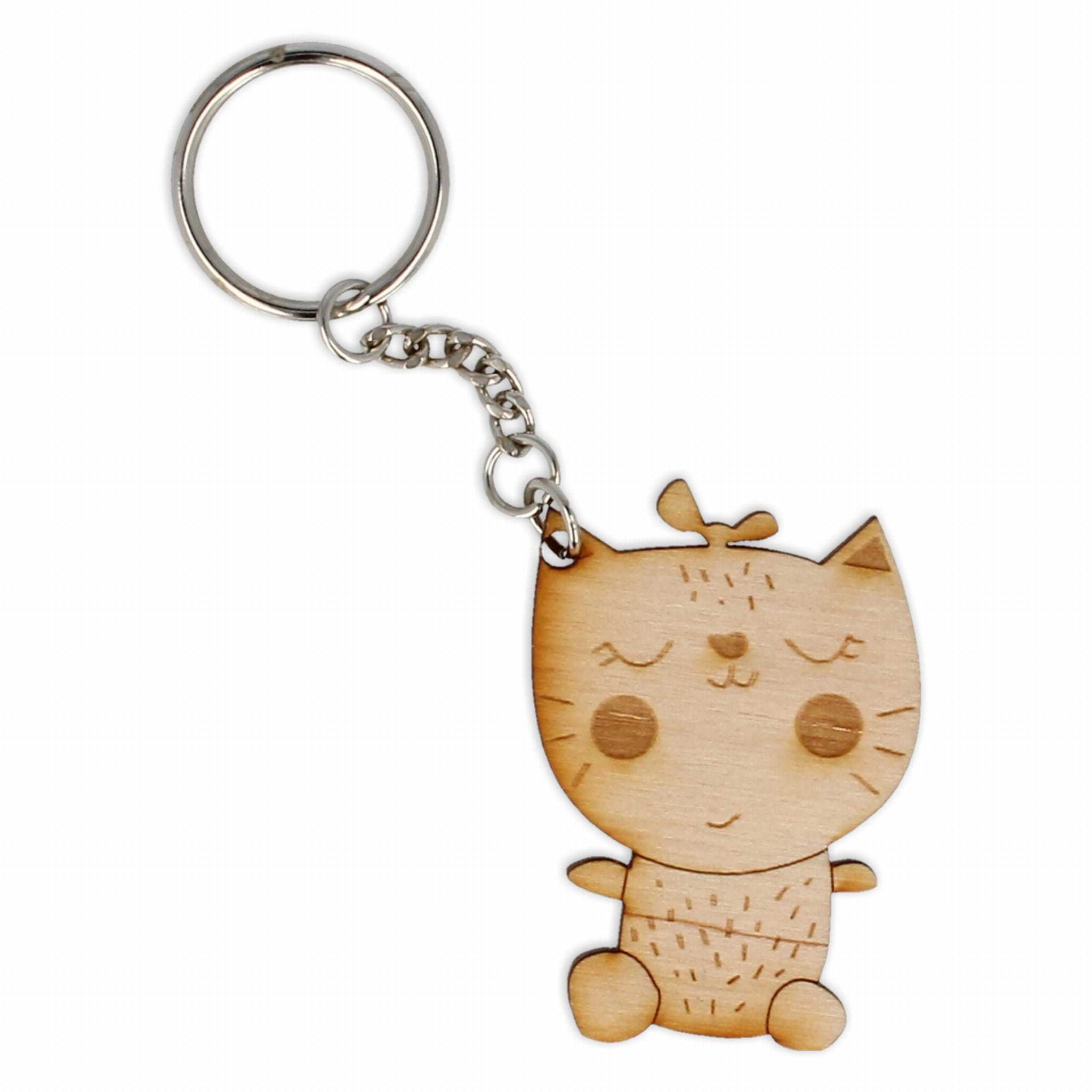 Brelok grawerowany w kształcie kotka utrzymanego w skandynawskiej stylistyce.