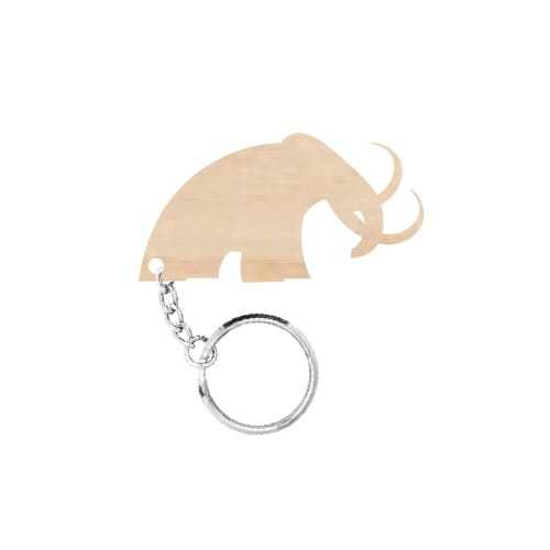 Drewniany brelok w kształcie mamuta do samodzielnego montażu.