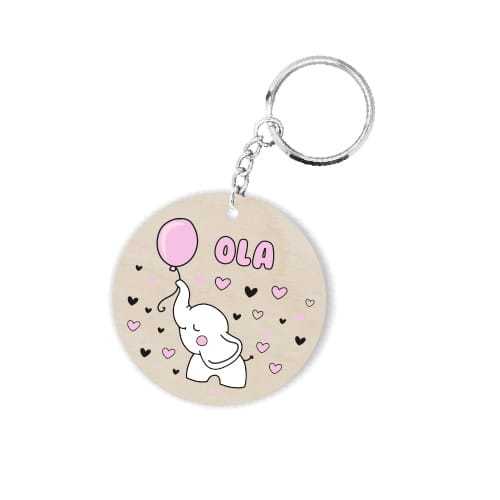 Drewniany brelok z nadrukiem kolorowego słonika. Po zakupie podaj, jakie imię mamy umieścić na breloku.