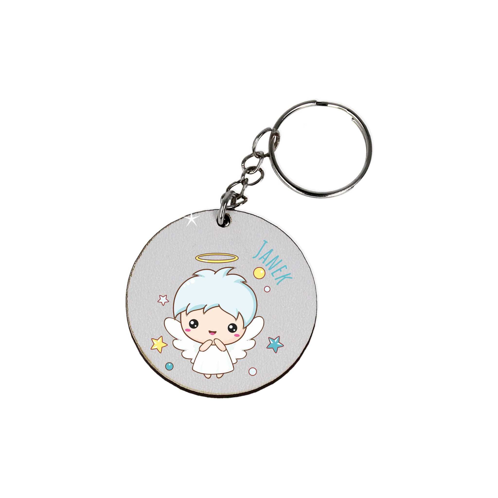 Brelok z nadrukiem kolorowego aniołka. Po zakupie podaj, jakie imię mamy umieścić na breloku.