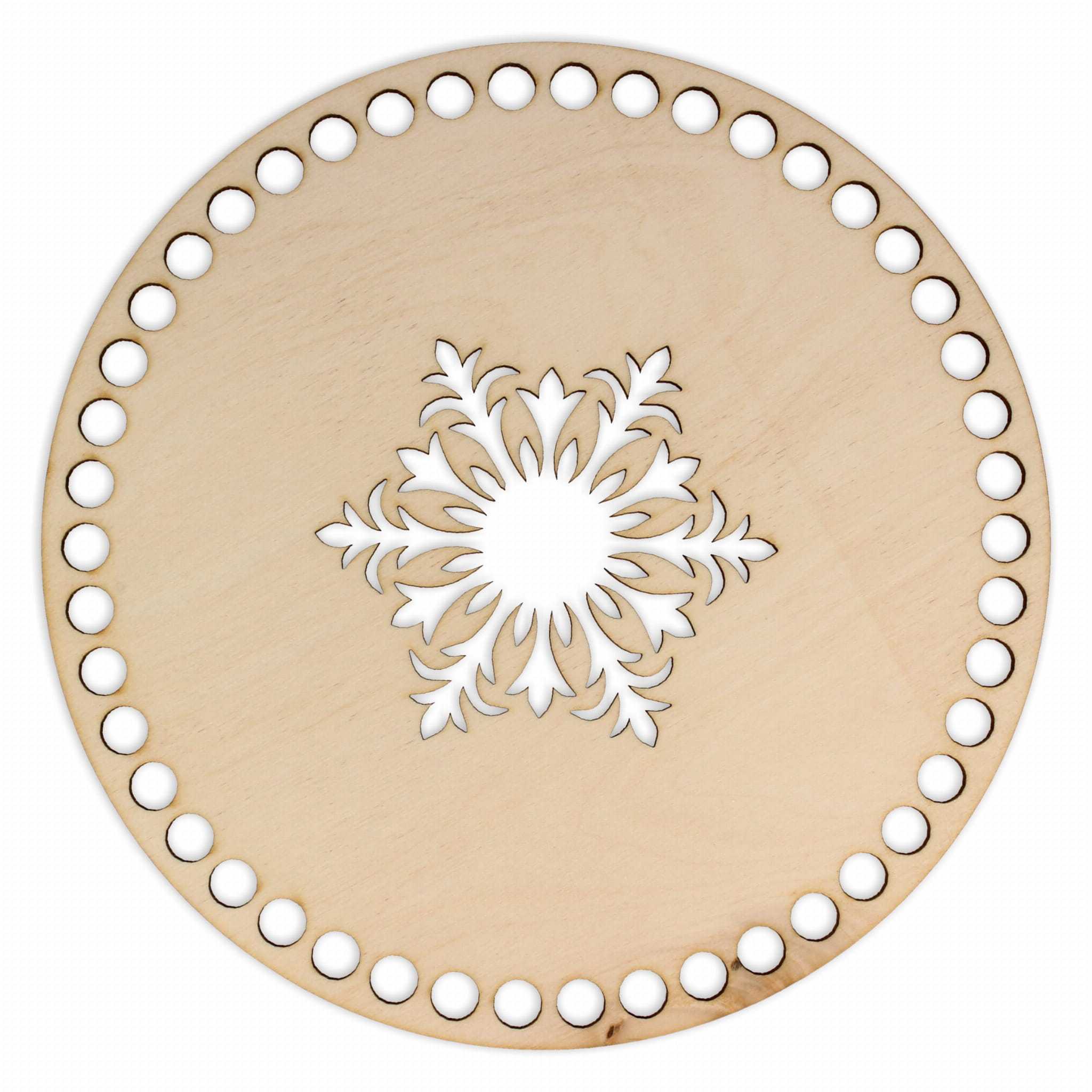 Okrągła baza pod szydełkowy koszyk ułatwi uzyskanie foremnego wzoru. Dekoracyjny wzór na dnie.