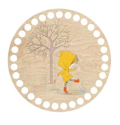 Baza pod szydełkowy koszyk w kształcie koła ułatwi uzyskanie foremnego wzoru. Dodatkowym elementem dekoracyjnym jest nadrukowana grafika przedstawiająca dziewczynkę spacerującą w deszczu. Dzięki oryginalnej bazie stworzysz wyjątkowy koszyczek na drobiazgi i podkreślisz charakter wnętrza ciekawym detalem.