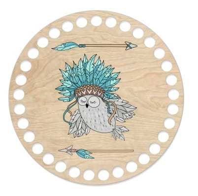 Baza pod szydełkowy koszyk w kształcie koła ułatwi uzyskanie foremnego wzoru. Dodatkowym elementem dekoracyjnym jest nadrukowana grafika przedstawiająca sowę w indiańskim pióropuszu. Dzięki oryginalnej bazie stworzysz wyjątkowy koszyczek na drobiazgi i podkreślisz charakter wnętrza ciekawym detalem.
