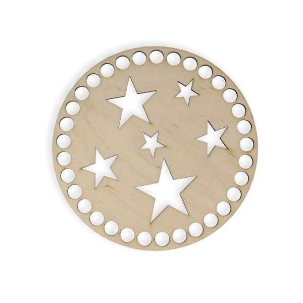 Baza pod szydełkowy koszyk w kształcie koła ułatwi uzyskanie foremnego wzoru. Dodatkowym elementem dekoracyjnym są gwiazdki wycięte w bazie.