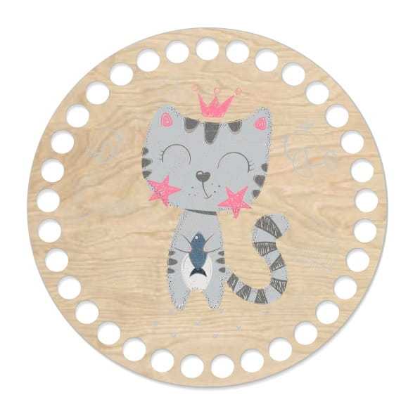 BSZ170-UV Baza koszyka - nadruk, koło 15cm - kotek w koronie
