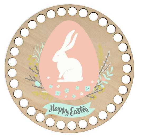 BSZ188-UV Baza koszyka - nadruk, koło 15cm - Wielkanoc, zajączek