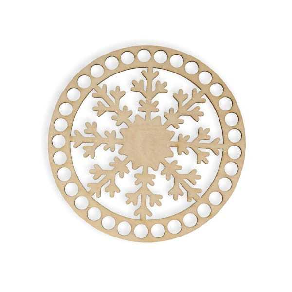 Baza pod szydełkowy koszyk w kształcie koła ułatwi uzyskanie foremnego wzoru. Dodatkowym elementem dekoracyjnym jest motyw płatka śniegu.