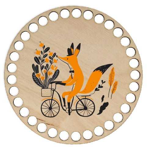 BSZ212-UV Baza koszyka - nadruk, koło 15cm - lis na rowerze