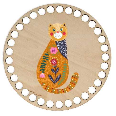 BSZ215-UV Baza koszyka - nadruk, koło 15cm - kot folk