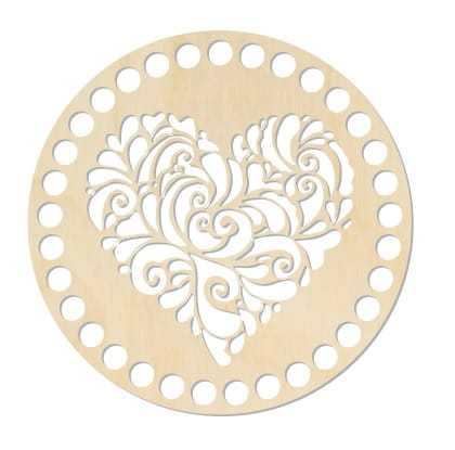 BSZ221 Baza koszyka, makramy - koło 15cm z wyciętym ażurowym sercem