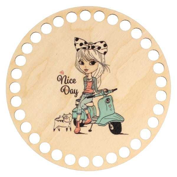 BSZ250-UV Baza koszyka - nadruk, koło 15cm - dziewczyna ze skuterem