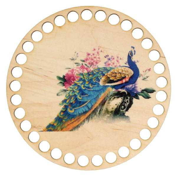 BSZ251-UV Baza koszyka - nadruk, koło 15cm - paw w kwiatach
