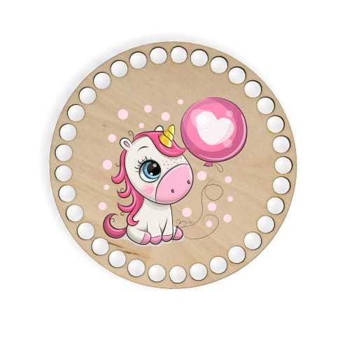 BSZ283-UV Baza koszyka - nadruk, koło 15cm - jednorożec z balonem