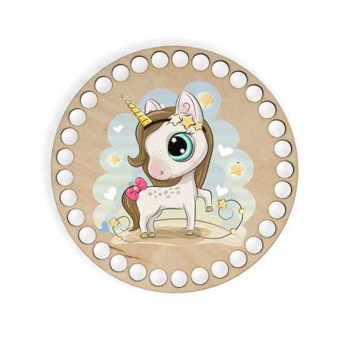 BSZ285-UV Baza koszyka - nadruk, koło 15cm - jednorożec z kokardą