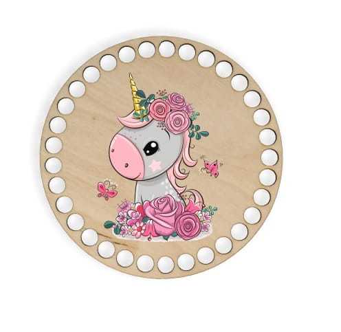 BSZ286-UV Baza koszyka - nadruk, koło 15cm - jednorożec w kwiatach