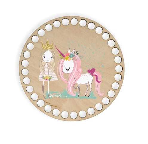 BSZ295-UV Baza koszyka - nadruk, koło 15cm - jednorożec i księżniczka