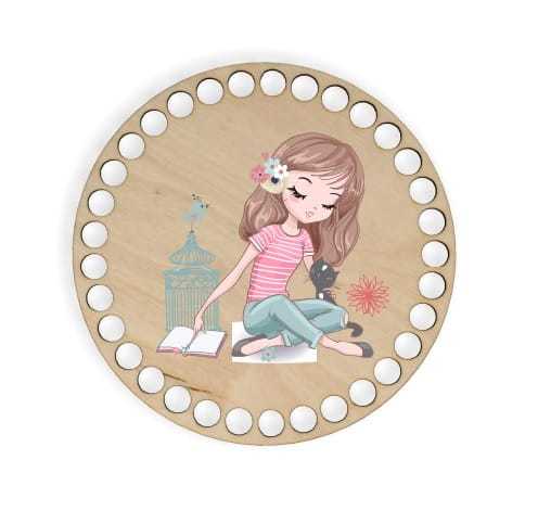 BSZ301-UV Baza koszyka - nadruk, koło 15cm - dziewczyna z kotkiem