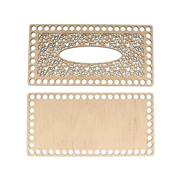 Baza pod szydełkowy chustecznik w kształcie prostokąta ułatwi uzyskanie foremnego wzoru. Zestaw zawiera wieko z otworem i podstawę.