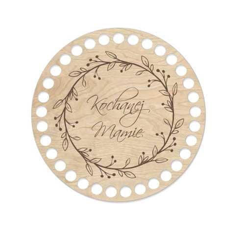 Baza pod szydełkowy koszyk w kształcie koła ułatwi uzyskanie foremnego wzoru. Dodatkowym elementem dekoracyjnym jest wygrawerowana grafika. Dzięki oryginalnej bazie stworzysz wyjątkowy koszyczek na drobiazgi i podkreślisz charakter wnętrza ciekawym detalem.