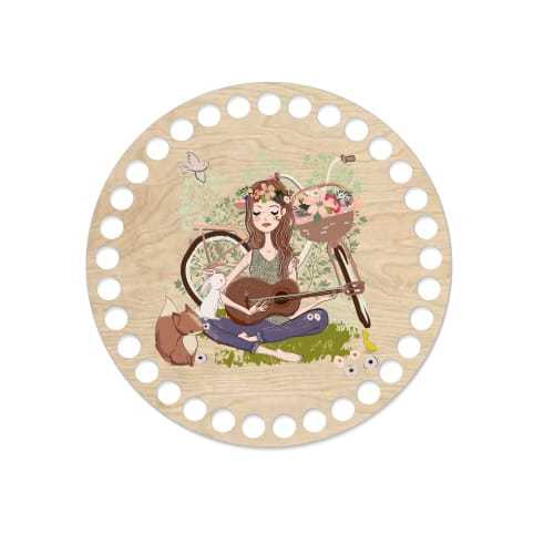 BSZ438-UV Baza koszyka - nadruk, koło 15cm - dziewczyna z gitarą i rowerem