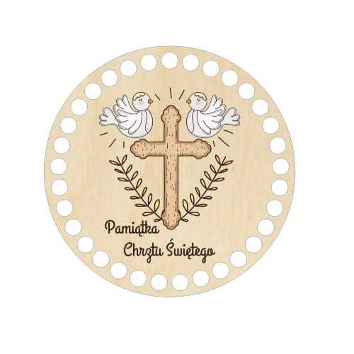 BSZ445-UV Baza do szydełkowania - koło 15cm, nadruk UV - Pamiątka Chrztu Świętego z gołąbkami i krzyżem