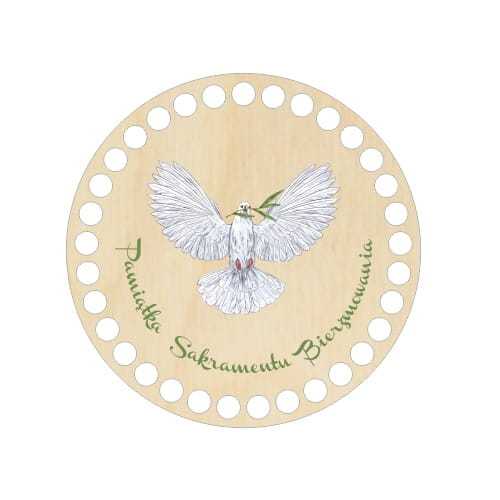 BSZ447-UV Baza do szydełkowania - koło 15cm, nadruk UV - Pamiątka Bierzmowania z gołębiem