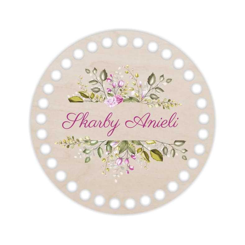 Baza pod szydełkowy koszyk w kształcie koła ułatwi uzyskanie foremnego wzoru. Dodatkowym elementem dekoracyjnym jest nadrukowany kolorowy motyw kwiatowy z napisem "Skarby Anieli". Imię jest personalizowane przez klienta podczas składania zamówienia. Dzięki oryginalnej bazie stworzysz wyjątkowy koszyczek na niezapomniane pamiątki.