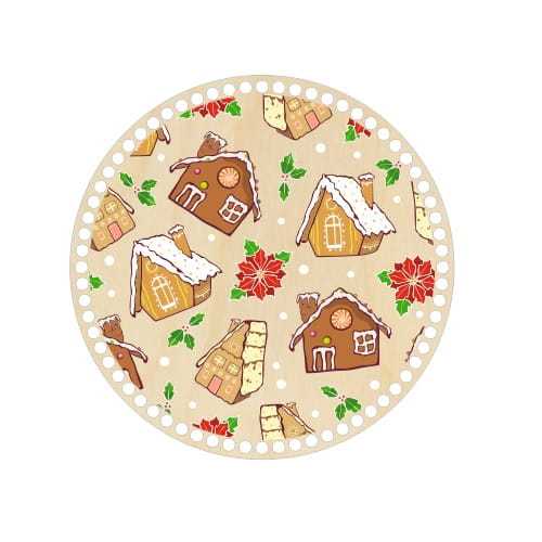 BSZ571-UV Baza koszyka z nadrukiem - koło 30cm - piernikowe chatki