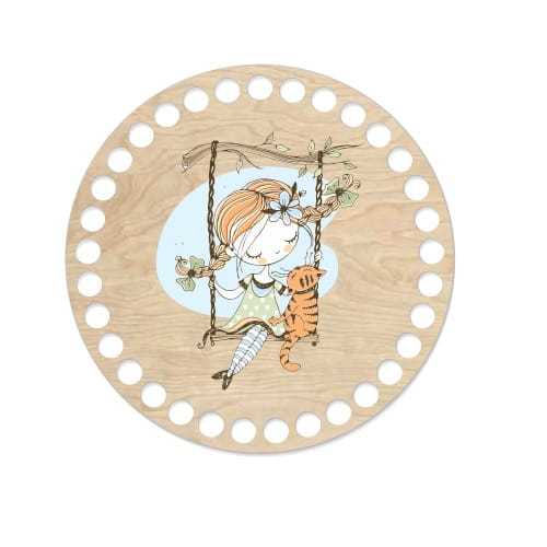 BSZ595-UV Baza koszyka z nadrukiem - 15cm - huśtawka z kotem i dziewczyną