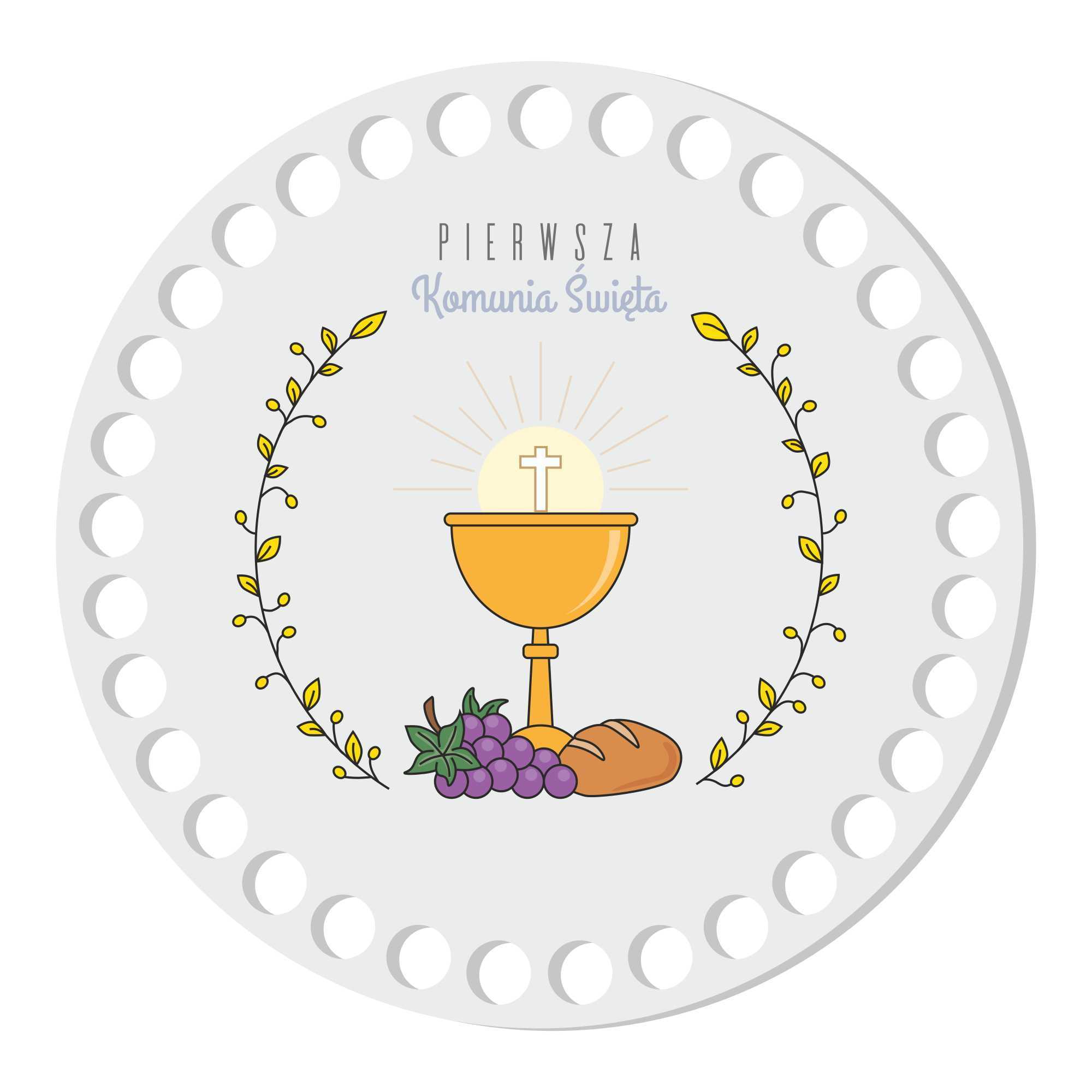 BSZ771-UVW Baza koszyka z nadrukiem - 15cm - Pierwsza Komunia Święta - biały HDF