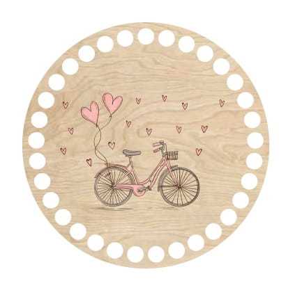 Baza pod szydełkowy koszyk w kształcie koła ułatwi uzyskanie foremnego wzoru. Dodatkowym elementem dekoracyjnym jest nadrukowana grafika przedstawiająca stylowy rower. Dzięki oryginalnej bazie stworzysz wyjątkowy koszyczek na drobiazgi i podkreślisz charakter wnętrza ciekawym detalem.