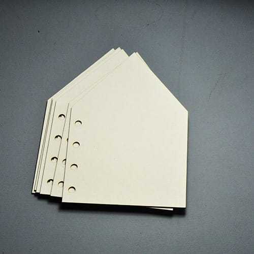 Baza albumowa z tektury w kształcie domku idealna do własnoręcznie robionych albumów czy notesów. Baza składa się z 6 kartonów z 4 otworami.