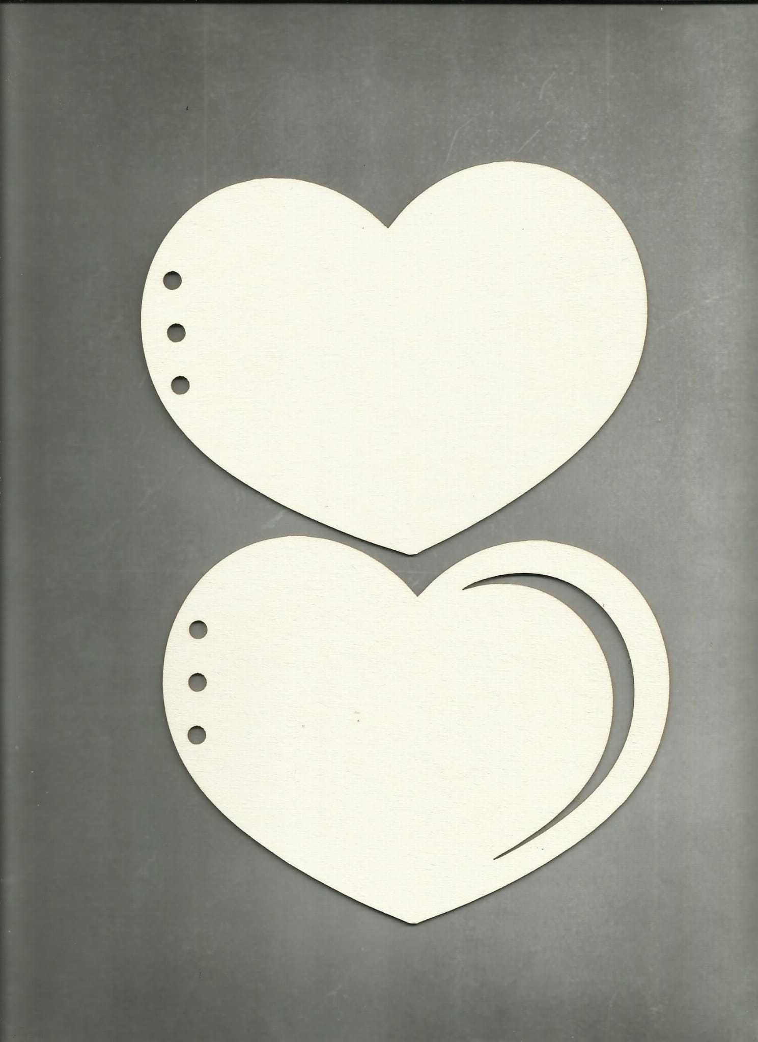 Baza z tektury w kształcie serca idealna do własnoręcznie robionych albumów czy notesów. Baza składa się z okładki w kształcie serca z wycięciem i 4 kartonów - gładkie serce - z 2 otworami.