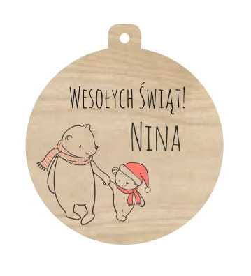 Bombka wykonana ze sklejki ozdobiona świątecznym motywem w technologii wysokiej jakości druku UV. Personalizacja w postaci imienia sprawia, że jest to doskonały podarek dla bliskiej osoby. Bombka może też pełnić funkcję bileciku prezentowego.